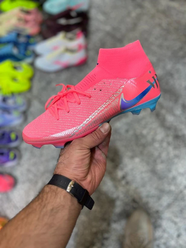کتونی استوک دار فوتبال نایک ایر زوم ساق دار سرخابی رنگی سایز 40 تا 45 NIKE AIR ZOOM