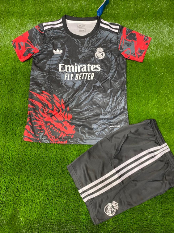 تیشرت و شلوارک مشکی فوتبالی رئال مادرید آدیداس مشکی دراگون سایز S تا 2XL